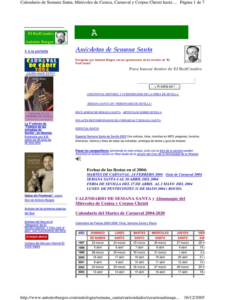 Calendario 1998 Semana Santa
