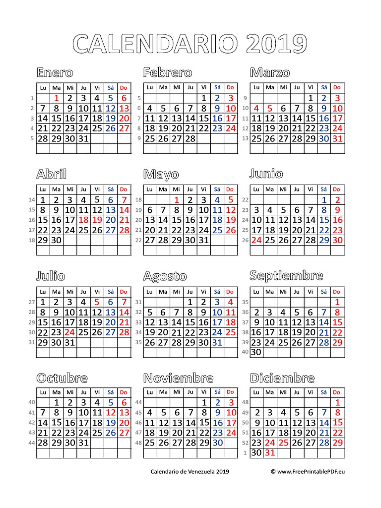 Calendario 2019 Venezuela Pdf