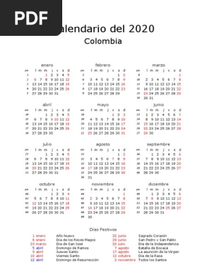 Calendario 2020 Colombia Con Festivos Y Fechas Especiales Pdf