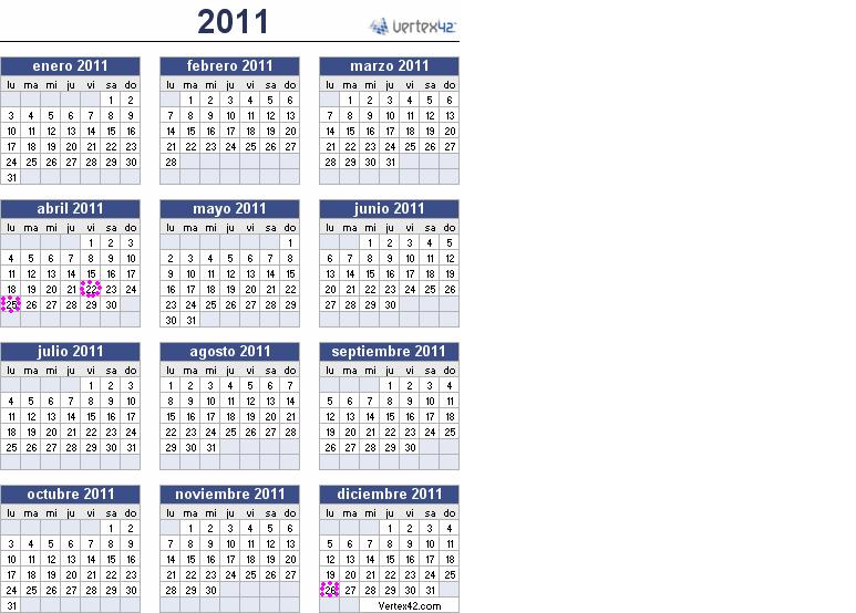 Calendario Ano 2011 Espana