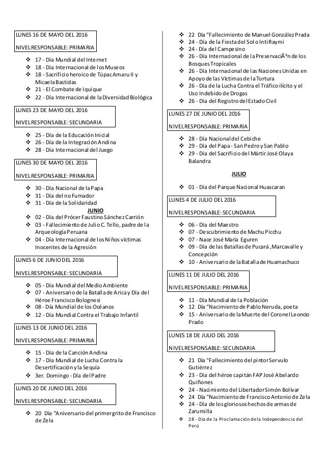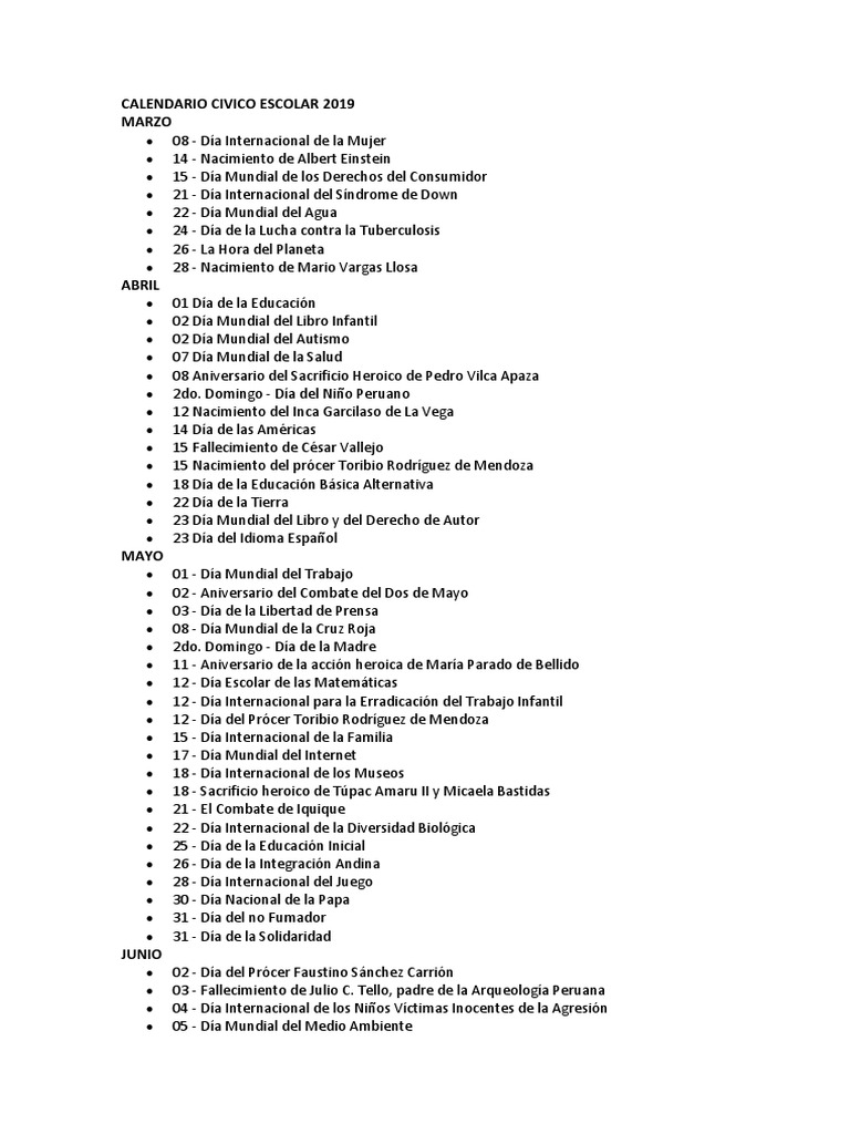 Calendario Civico Escolar 2020 De Minedu Ministerio De Educacion