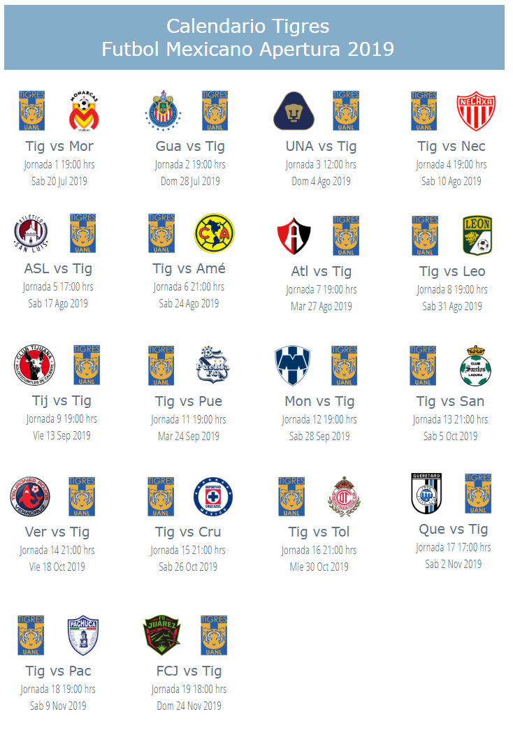 Calendario Clausura 2019 Liga Mx Resultados Futbol Mexicano
