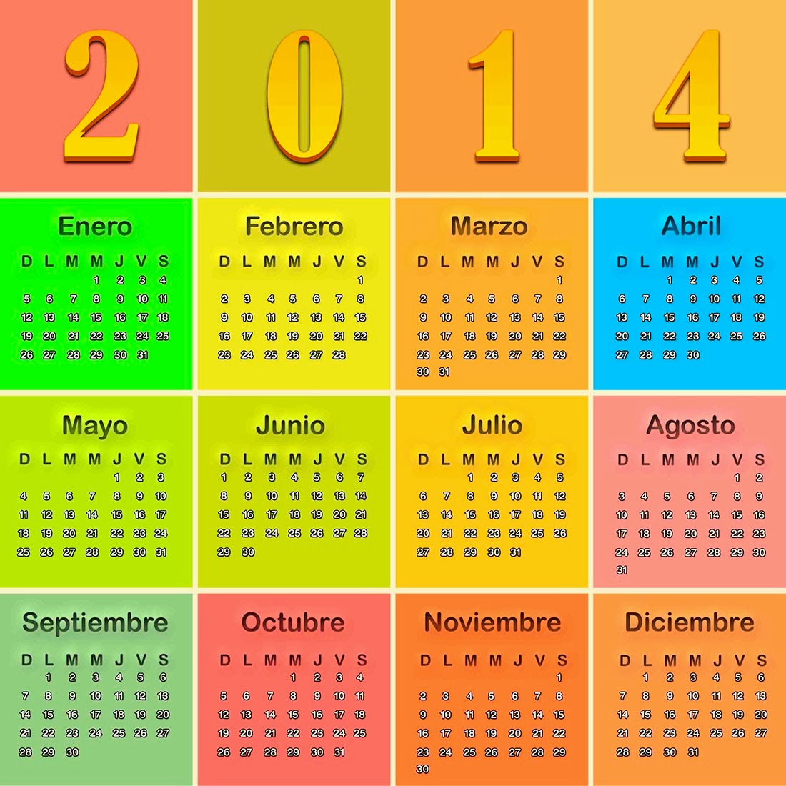 Calendario Del 2014 En Espanol