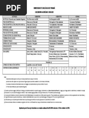 Calendario Utp 2020 Verano
