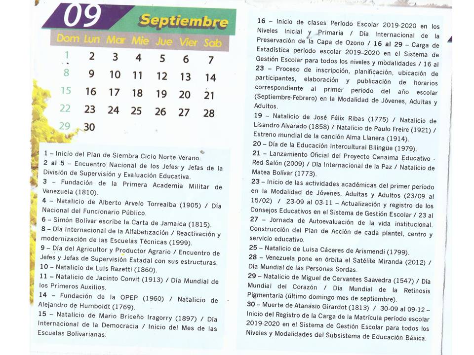 Mppe Calendario Escolar 2019 Y 2020 Venezuela