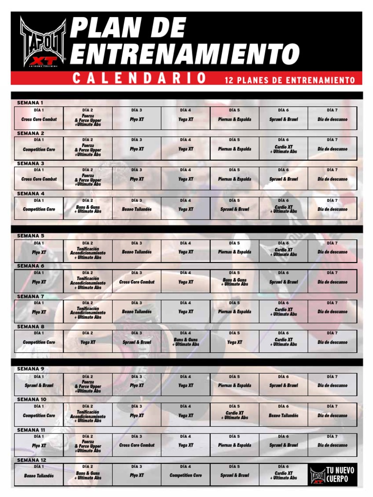 Tapout Xt Calendario De Entrenamiento Pdf
